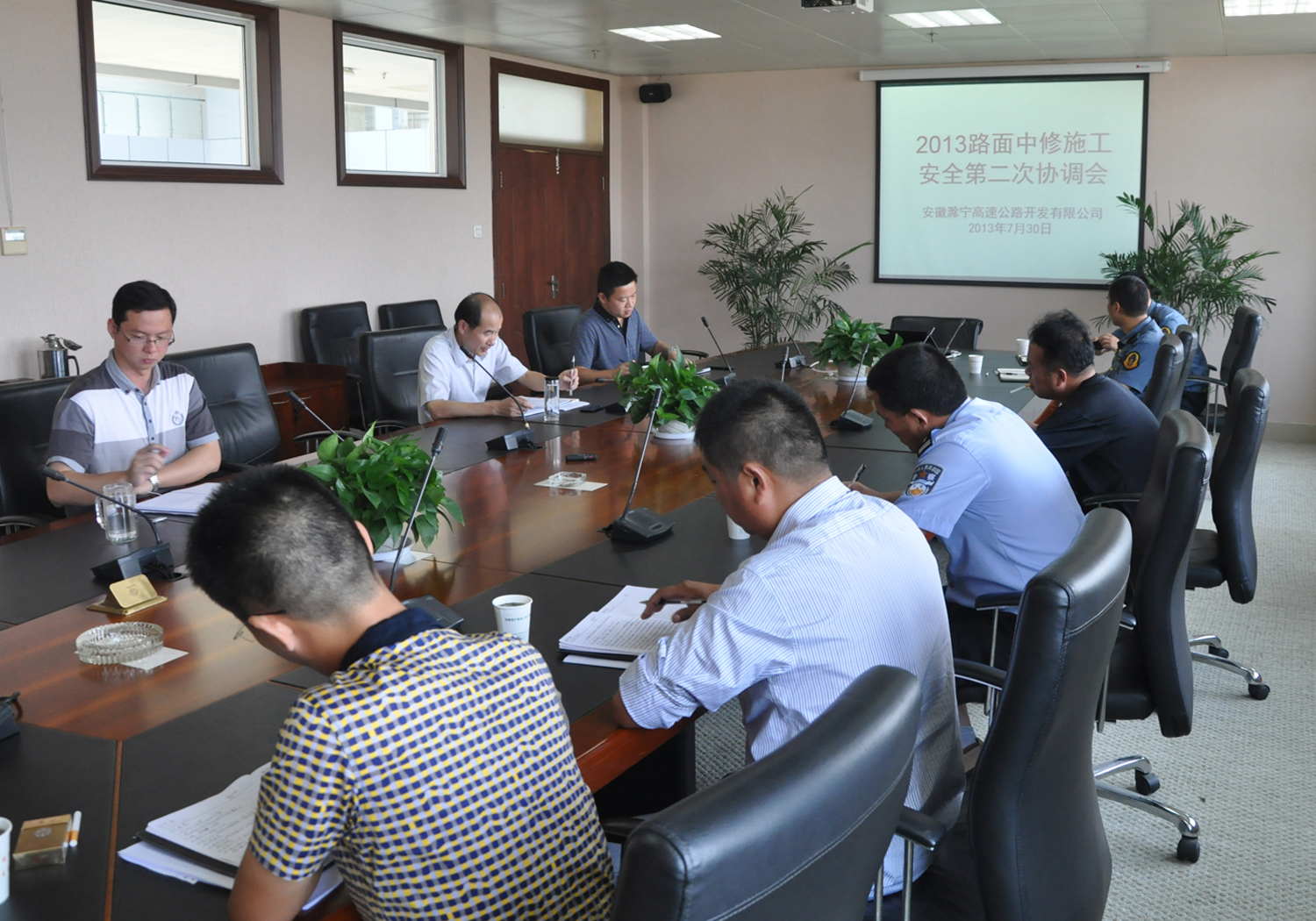7月30日下午,公司联合高速交警三大队、蚌宁高速路政大队及路面中修施工、监理单位,共同召开路面中修施工安全第二次协调会。会议总结了近半个月路面施工安全管理情况,重点就目前路面施工期间夜间出现的特殊情况的处置方案进行了讨论和研究。